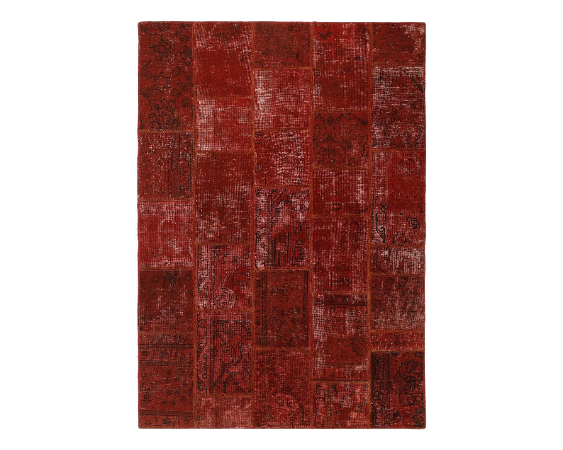 Vintage Royal Patchwork -matot valmistetaan persialaisista villamatoista, jotka on leikattu pienemmiksi paloiksi ja koottu uudelleen tilkkutäkkimäiseksi sommitelmaksi. Palat kivipestään ja värjätään uudelleen, jolloin alkuperäinen kuviointi jää hienovaraisesti näkyviin ja pinta saa pehmeän, kerroksellisen ilmeen. Vaihtelut sävyissä ja palojen kuvioissa tekevät jokaisesta Vintage Royal Patchwork -matosta ainutlaatuisen. Käyttämätön.