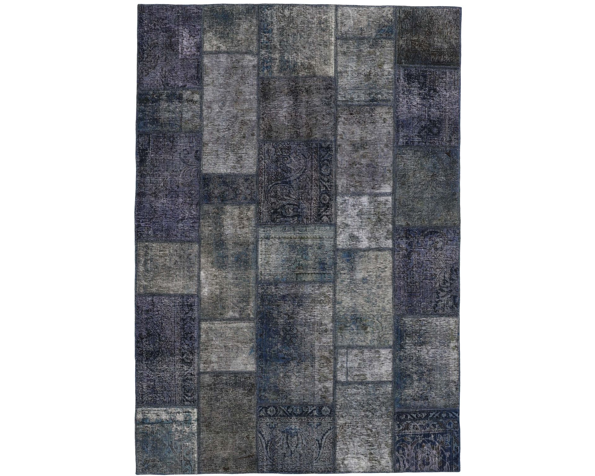 Vintage Royal Patchwork -matot valmistetaan persialaisista villamatoista, jotka on leikattu pienemmiksi paloiksi ja koottu uudelleen tilkkutäkkimäiseksi sommitelmaksi. Palat kivipestään ja värjätään uudelleen, jolloin alkuperäinen kuviointi jää hienovaraisesti näkyviin ja pinta saa pehmeän, kerroksellisen ilmeen. Vaihtelut sävyissä ja palojen kuvioissa tekevät jokaisesta Vintage Royal Patchwork -matosta ainutlaatuisen. Käyttämätön.