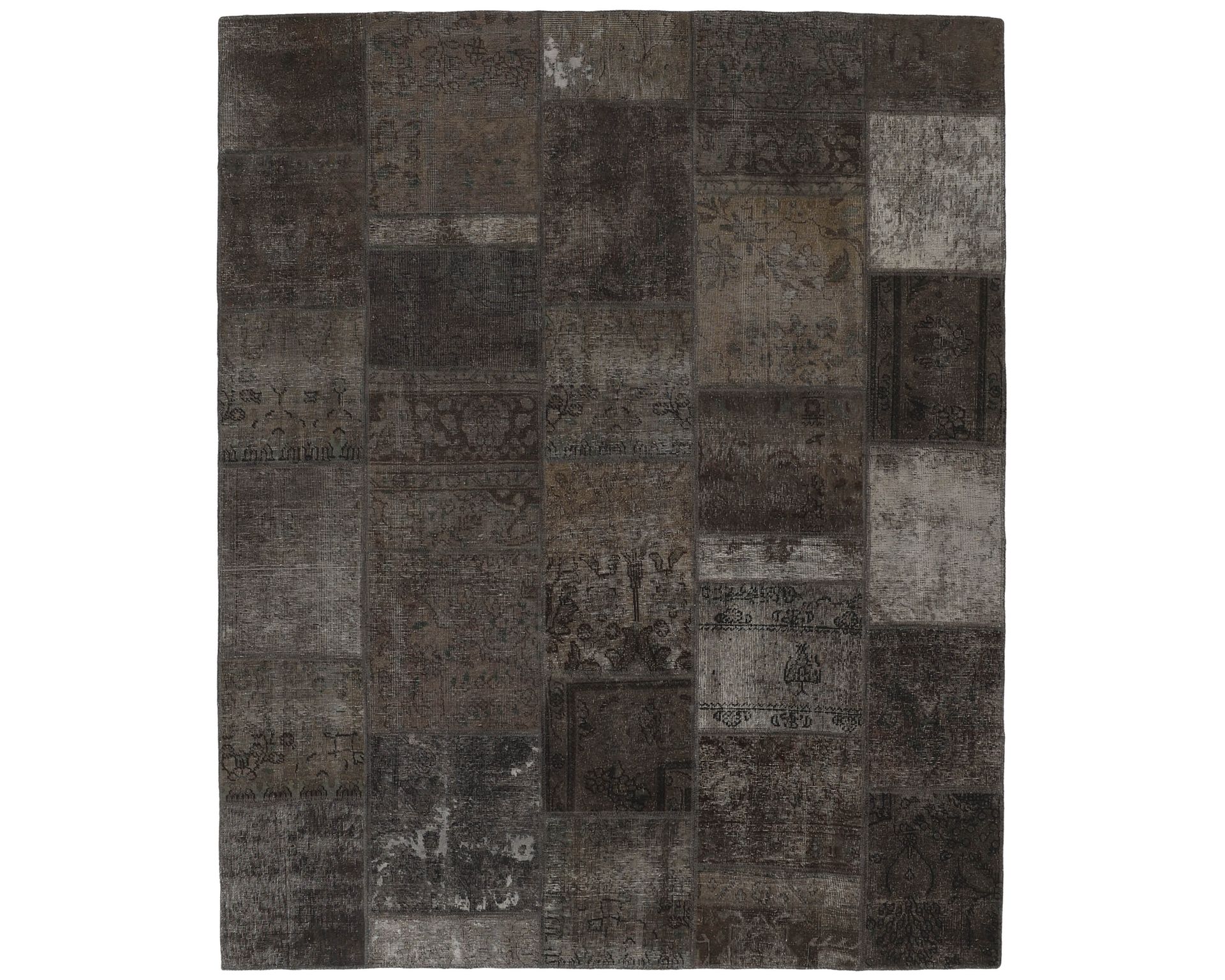 Vintage Royal Patchwork -matot valmistetaan persialaisista villamatoista, jotka on leikattu pienemmiksi paloiksi ja koottu uudelleen tilkkutäkkimäiseksi sommitelmaksi. Palat kivipestään ja värjätään uudelleen, jolloin alkuperäinen kuviointi jää hienovaraisesti näkyviin ja pinta saa pehmeän, kerroksellisen ilmeen. Vaihtelut sävyissä ja palojen kuvioissa tekevät jokaisesta Vintage Royal Patchwork -matosta ainutlaatuisen. Käyttämätön.