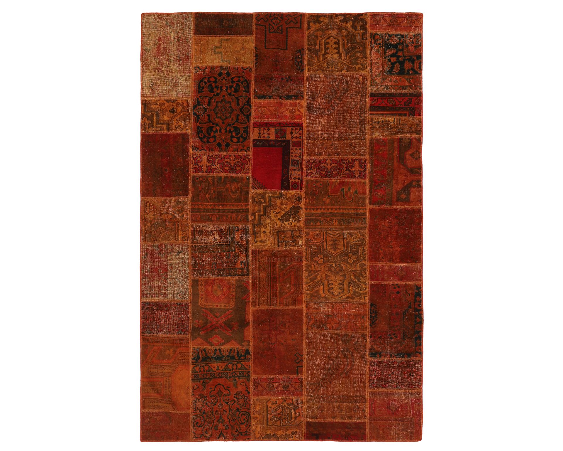 Vintage Royal Patchwork -matot valmistetaan persialaisista villamatoista, jotka on leikattu pienemmiksi paloiksi ja koottu uudelleen tilkkutäkkimäiseksi sommitelmaksi. Palat kivipestään ja värjätään uudelleen, jolloin alkuperäinen kuviointi jää hienovaraisesti näkyviin ja pinta saa pehmeän, kerroksellisen ilmeen. Vaihtelut sävyissä ja palojen kuvioissa tekevät jokaisesta Vintage Royal Patchwork -matosta ainutlaatuisen. Käyttämätön.