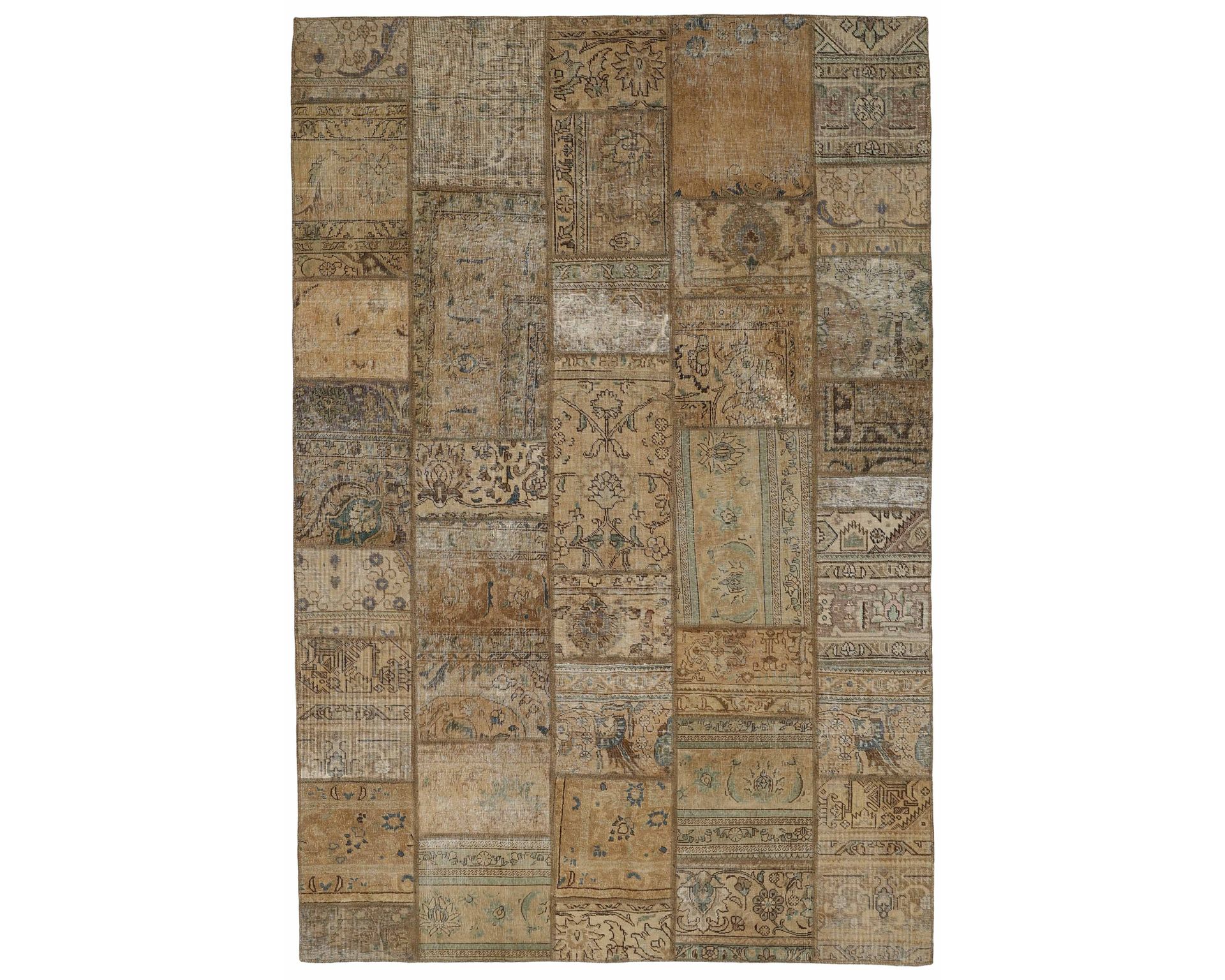 Vintage Royal Patchwork -matot valmistetaan persialaisista villamatoista, jotka on leikattu pienemmiksi paloiksi ja koottu uudelleen tilkkutäkkimäiseksi sommitelmaksi. Palat kivipestään ja värjätään uudelleen, jolloin alkuperäinen kuviointi jää hienovaraisesti näkyviin ja pinta saa pehmeän, kerroksellisen ilmeen. Vaihtelut sävyissä ja palojen kuvioissa tekevät jokaisesta Vintage Royal Patchwork -matosta ainutlaatuisen. Käyttämätön.