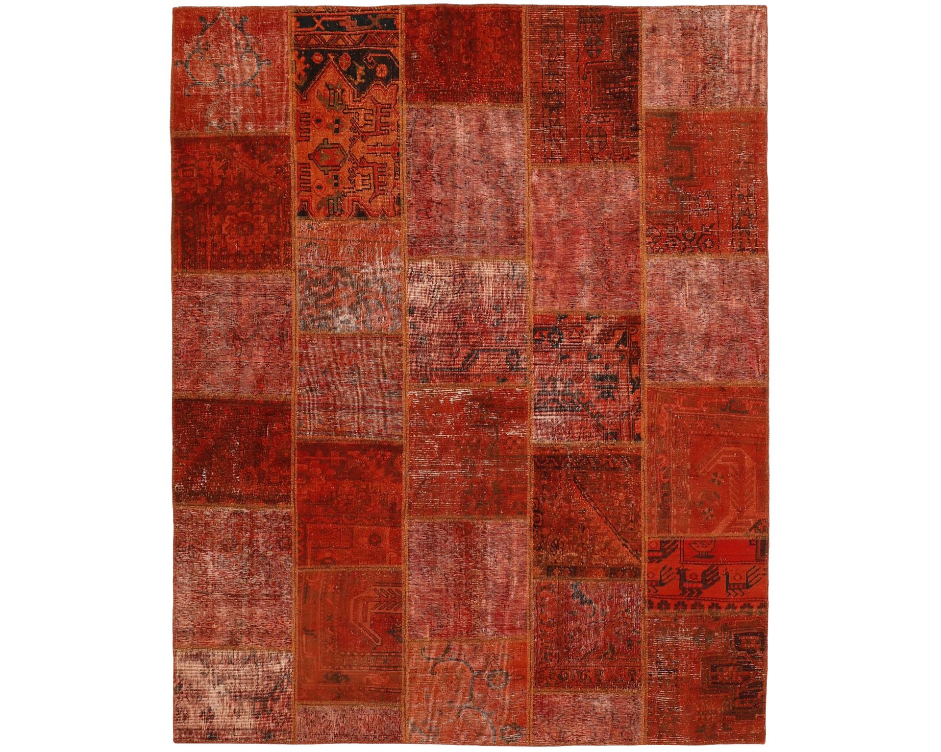 Vintage Royal Patchwork -matot valmistetaan persialaisista villamatoista, jotka on leikattu pienemmiksi paloiksi ja koottu uudelleen tilkkutäkkimäiseksi sommitelmaksi. Palat kivipestään ja värjätään uudelleen, jolloin alkuperäinen kuviointi jää hienovaraisesti näkyviin ja pinta saa pehmeän, kerroksellisen ilmeen. Vaihtelut sävyissä ja palojen kuvioissa tekevät jokaisesta Vintage Royal Patchwork -matosta ainutlaatuisen. Käyttämätön.