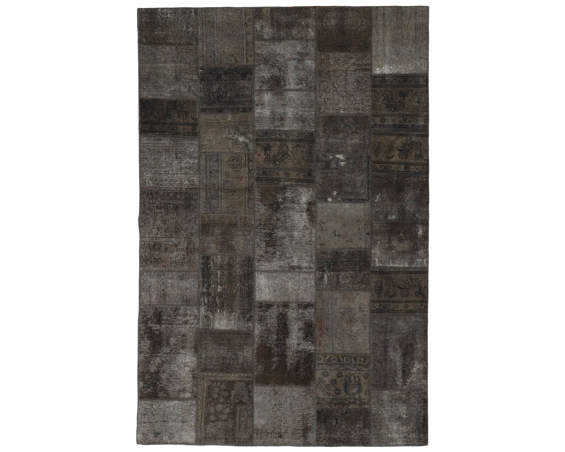 Vintage Royal Patchwork -matot valmistetaan persialaisista villamatoista, jotka on leikattu pienemmiksi paloiksi ja koottu uudelleen tilkkutäkkimäiseksi sommitelmaksi. Palat kivipestään ja värjätään uudelleen, jolloin alkuperäinen kuviointi jää hienovaraisesti näkyviin ja pinta saa pehmeän, kerroksellisen ilmeen. Vaihtelut sävyissä ja palojen kuvioissa tekevät jokaisesta Vintage Royal Patchwork -matosta ainutlaatuisen. Käyttämätön.