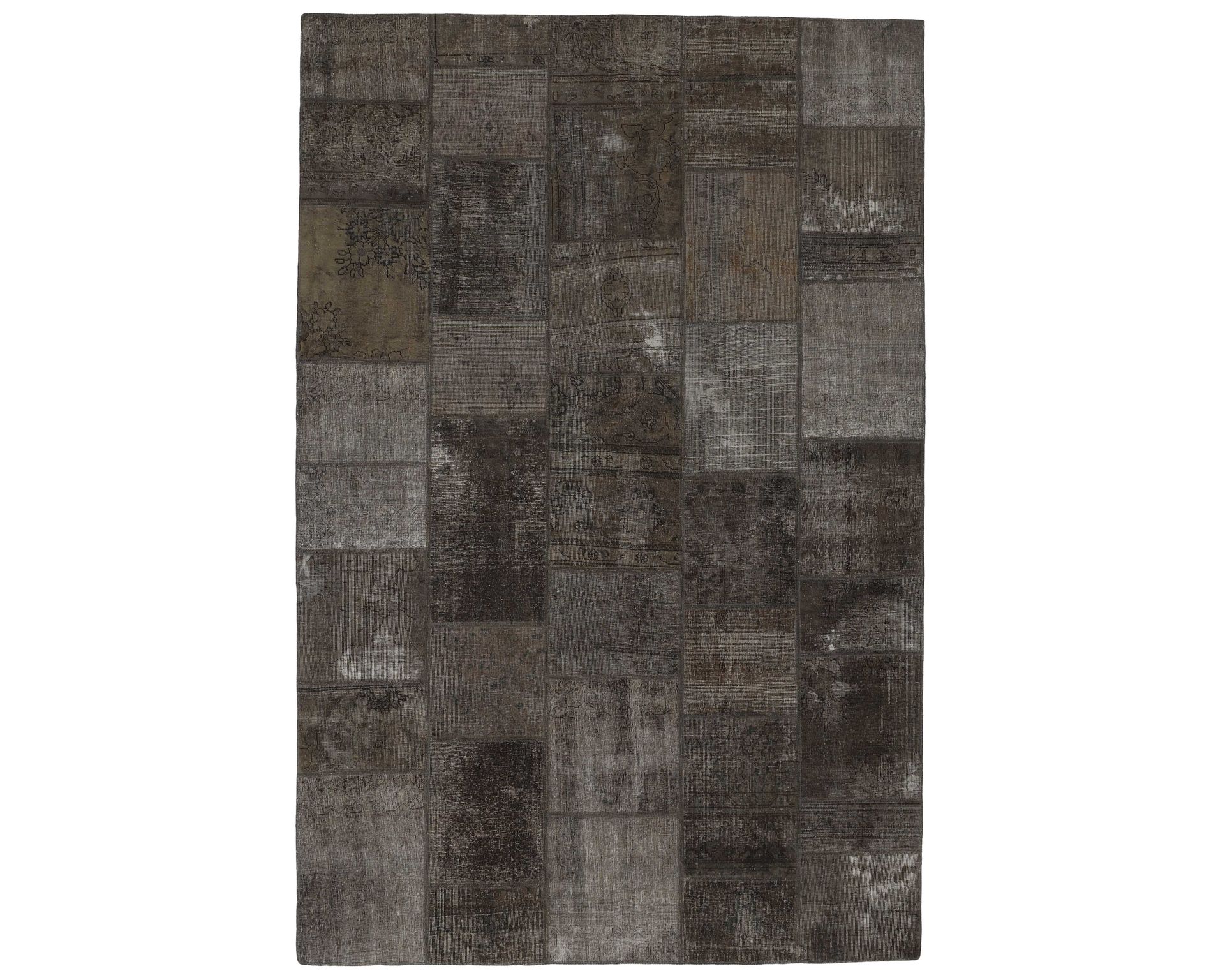 Vintage Royal Patchwork -matot valmistetaan persialaisista villamatoista, jotka on leikattu pienemmiksi paloiksi ja koottu uudelleen tilkkutäkkimäiseksi sommitelmaksi. Palat kivipestään ja värjätään uudelleen, jolloin alkuperäinen kuviointi jää hienovaraisesti näkyviin ja pinta saa pehmeän, kerroksellisen ilmeen. Vaihtelut sävyissä ja palojen kuvioissa tekevät jokaisesta Vintage Royal Patchwork -matosta ainutlaatuisen. Käyttämätön.