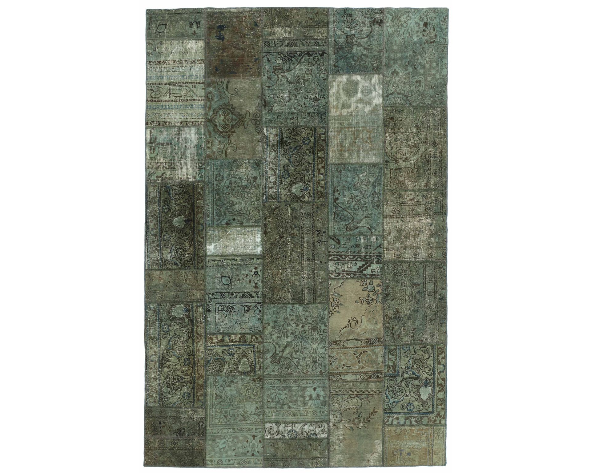 Vintage Royal Patchwork -matot valmistetaan persialaisista villamatoista, jotka on leikattu pienemmiksi paloiksi ja koottu uudelleen tilkkutäkkimäiseksi sommitelmaksi. Palat kivipestään ja värjätään uudelleen, jolloin alkuperäinen kuviointi jää hienovaraisesti näkyviin ja pinta saa pehmeän, kerroksellisen ilmeen. Vaihtelut sävyissä ja palojen kuvioissa tekevät jokaisesta Vintage Royal Patchwork -matosta ainutlaatuisen. Käyttämätön.