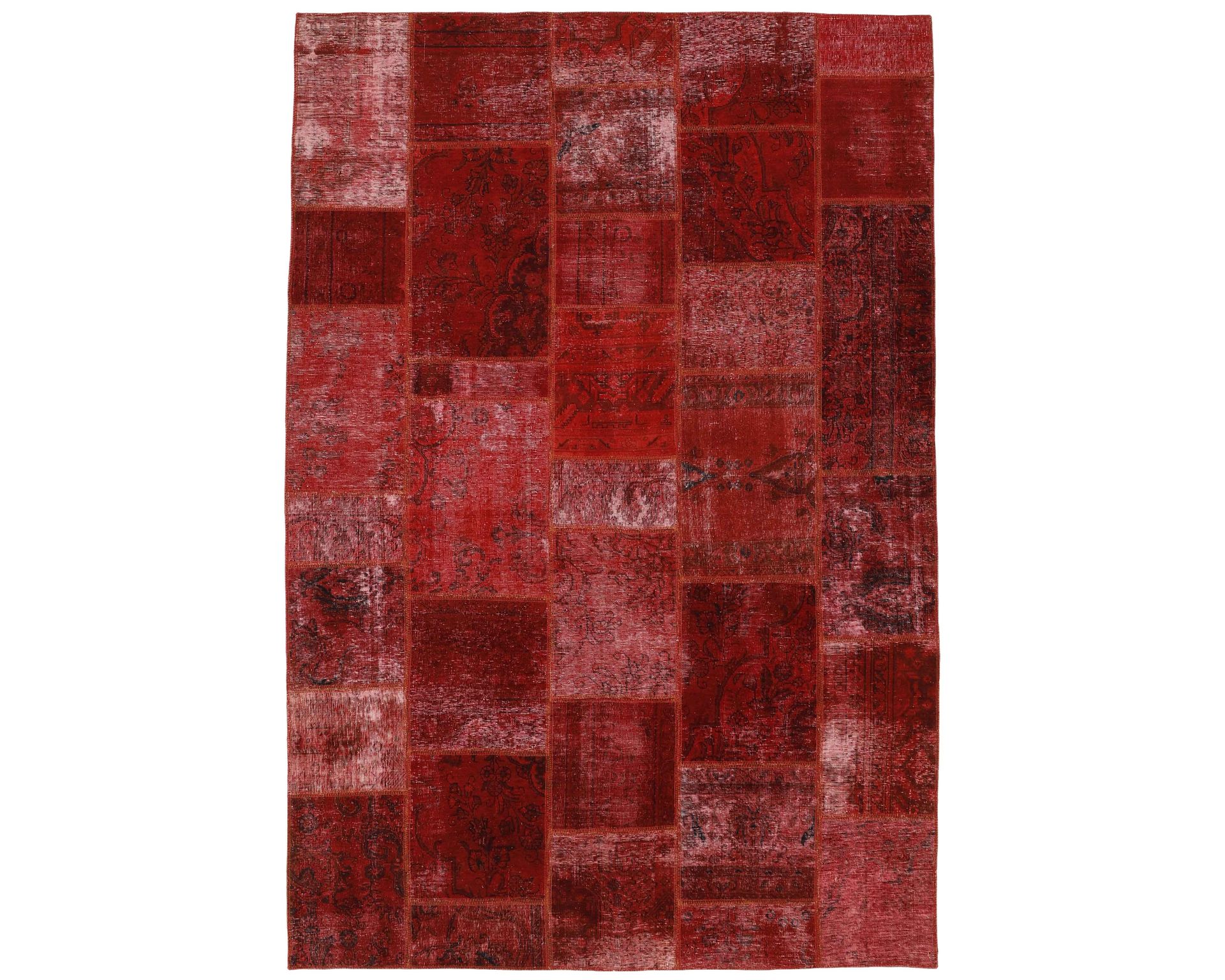 Vintage Royal Patchwork -matot valmistetaan persialaisista villamatoista, jotka on leikattu pienemmiksi paloiksi ja koottu uudelleen tilkkutäkkimäiseksi sommitelmaksi. Palat kivipestään ja värjätään uudelleen, jolloin alkuperäinen kuviointi jää hienovaraisesti näkyviin ja pinta saa pehmeän, kerroksellisen ilmeen. Vaihtelut sävyissä ja palojen kuvioissa tekevät jokaisesta Vintage Royal Patchwork -matosta ainutlaatuisen. Käyttämätön.