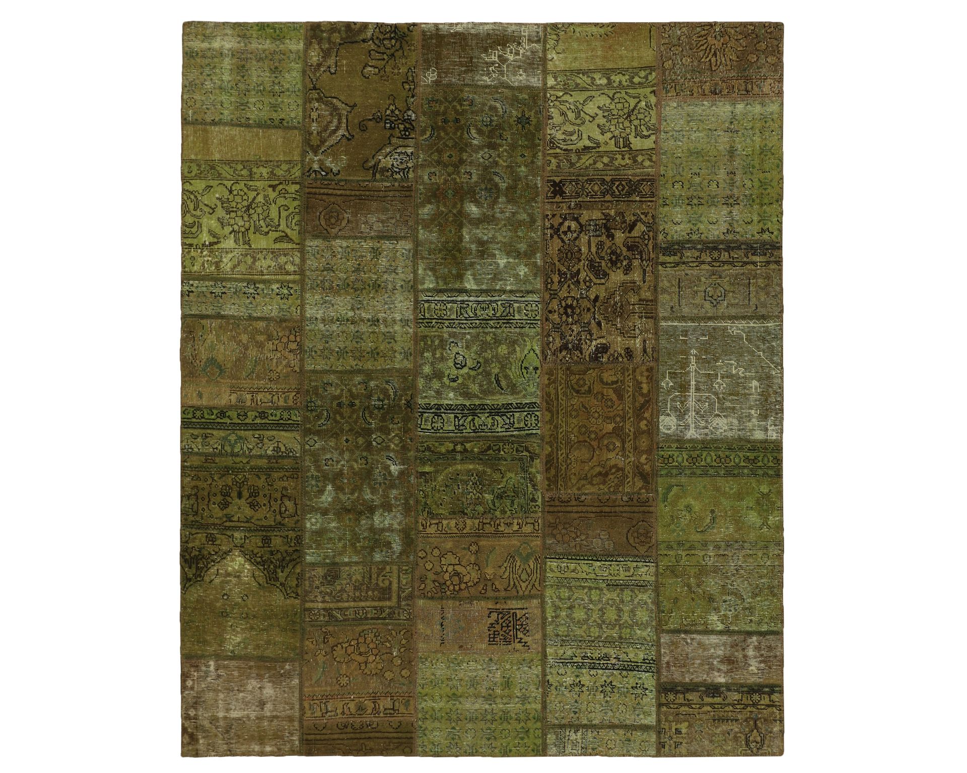 Vintage Royal Patchwork -matot valmistetaan persialaisista villamatoista, jotka on leikattu pienemmiksi paloiksi ja koottu uudelleen tilkkutäkkimäiseksi sommitelmaksi. Palat kivipestään ja värjätään uudelleen, jolloin alkuperäinen kuviointi jää hienovaraisesti näkyviin ja pinta saa pehmeän, kerroksellisen ilmeen. Vaihtelut sävyissä ja palojen kuvioissa tekevät jokaisesta Vintage Royal Patchwork -matosta ainutlaatuisen. Käyttämätön.