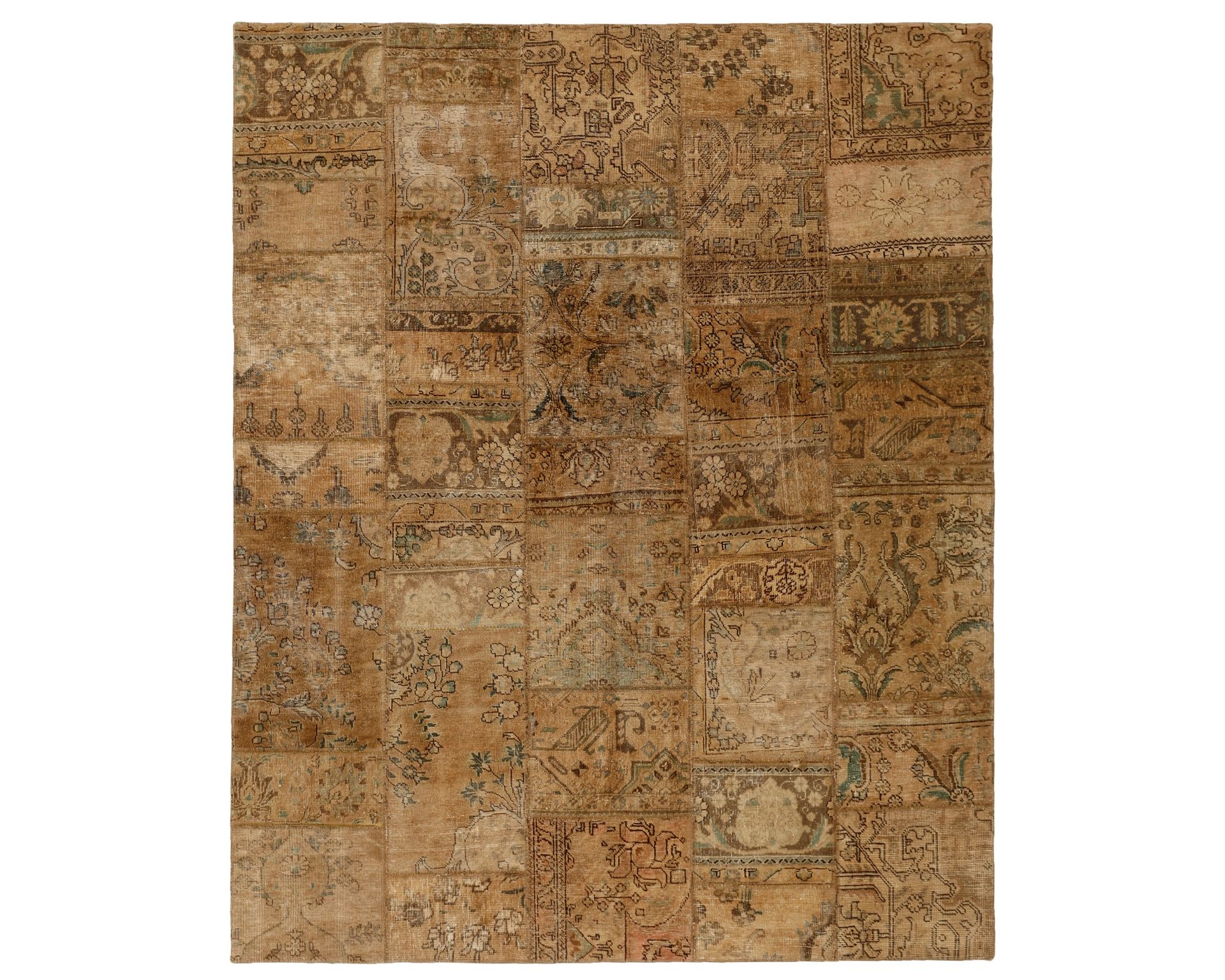 Vintage Royal Patchwork -matot valmistetaan persialaisista villamatoista, jotka on leikattu pienemmiksi paloiksi ja koottu uudelleen tilkkutäkkimäiseksi sommitelmaksi. Palat kivipestään ja värjätään uudelleen, jolloin alkuperäinen kuviointi jää hienovaraisesti näkyviin ja pinta saa pehmeän, kerroksellisen ilmeen. Vaihtelut sävyissä ja palojen kuvioissa tekevät jokaisesta Vintage Royal Patchwork -matosta ainutlaatuisen. Käyttämätön.