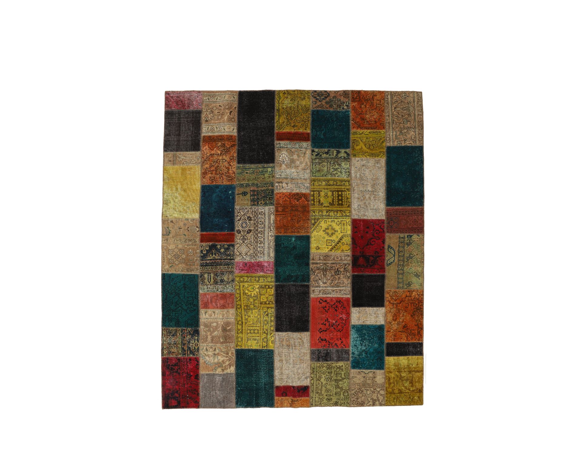 Vintage Royal Patchwork -matot valmistetaan persialaisista villamatoista, jotka on leikattu pienemmiksi paloiksi ja koottu uudelleen tilkkutäkkimäiseksi sommitelmaksi. Palat kivipestään ja värjätään uudelleen, jolloin alkuperäinen kuviointi jää hienovaraisesti näkyviin ja pinta saa pehmeän, kerroksellisen ilmeen. Vaihtelut sävyissä ja palojen kuvioissa tekevät jokaisesta Vintage Royal Patchwork -matosta ainutlaatuisen. Käyttämätön.