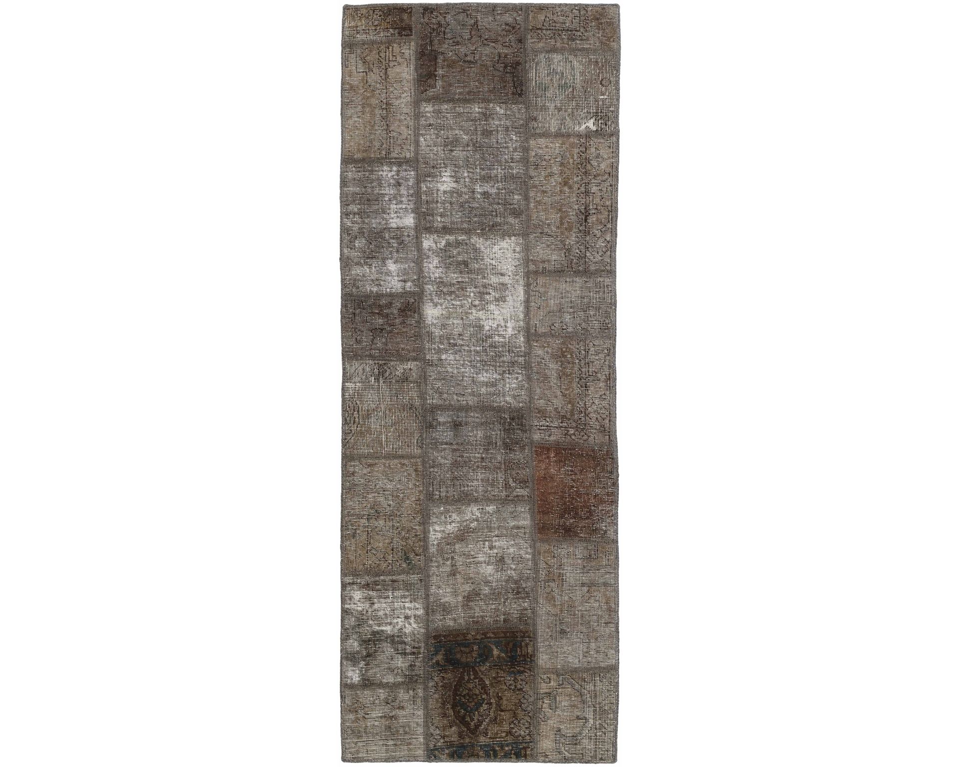 Vintage Royal Patchwork -matot valmistetaan persialaisista villamatoista, jotka on leikattu pienemmiksi paloiksi ja koottu uudelleen tilkkutäkkimäiseksi sommitelmaksi. Palat kivipestään ja värjätään uudelleen, jolloin alkuperäinen kuviointi jää hienovaraisesti näkyviin ja pinta saa pehmeän, kerroksellisen ilmeen. Vaihtelut sävyissä ja palojen kuvioissa tekevät jokaisesta Vintage Royal Patchwork -matosta ainutlaatuisen. Käyttämätön.