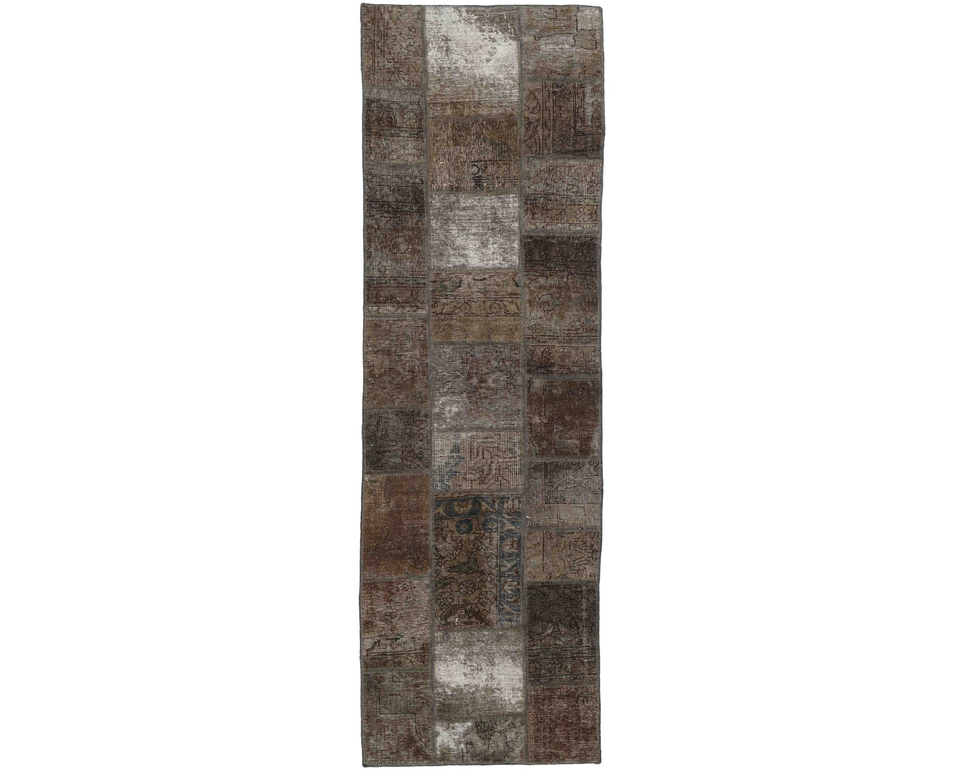 Vintage Royal Patchwork -matot valmistetaan persialaisista villamatoista, jotka on leikattu pienemmiksi paloiksi ja koottu uudelleen tilkkutäkkimäiseksi sommitelmaksi. Palat kivipestään ja värjätään uudelleen, jolloin alkuperäinen kuviointi jää hienovaraisesti näkyviin ja pinta saa pehmeän, kerroksellisen ilmeen. Vaihtelut sävyissä ja palojen kuvioissa tekevät jokaisesta Vintage Royal Patchwork -matosta ainutlaatuisen. Käyttämätön.