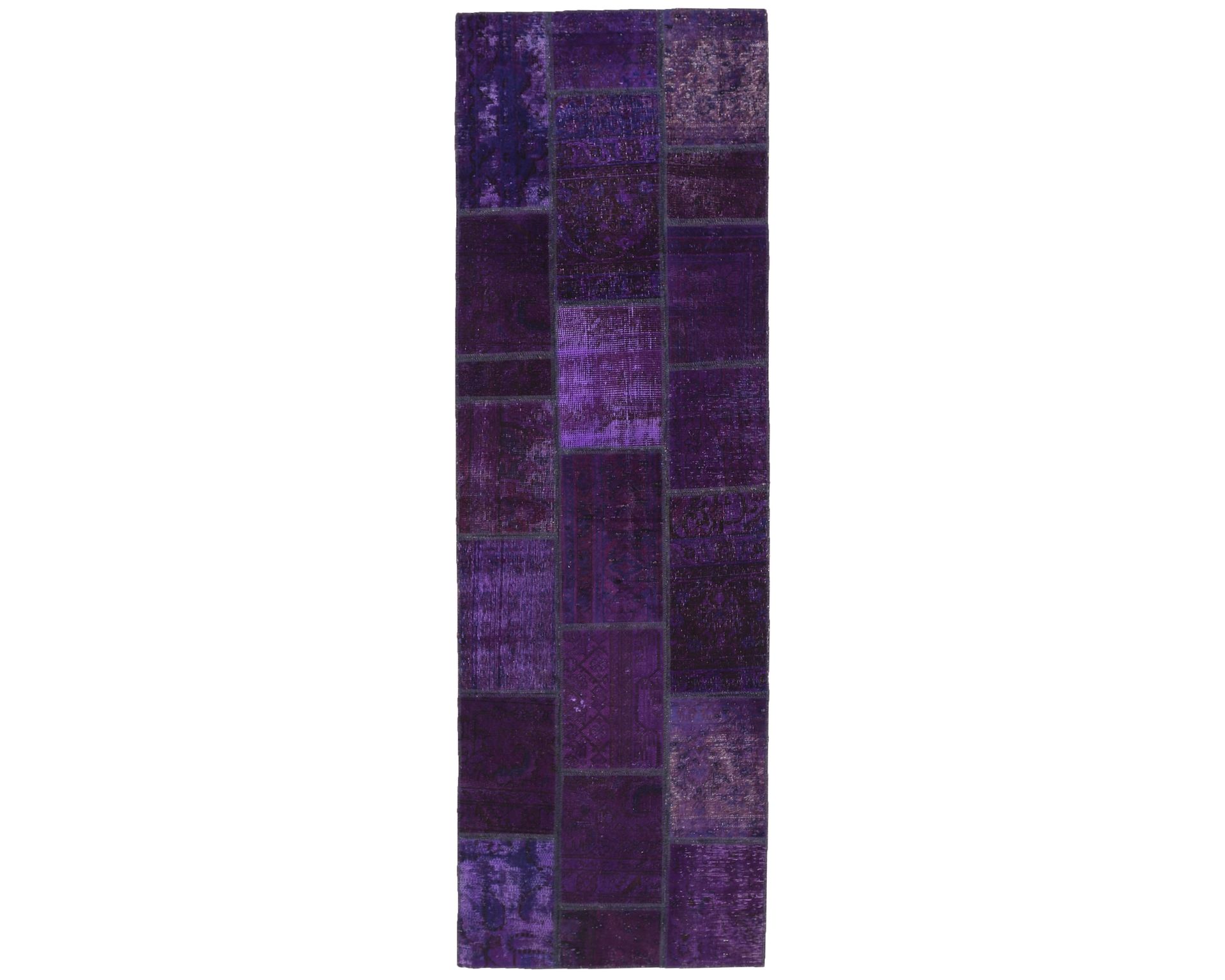 Vintage Royal Patchwork -matot valmistetaan persialaisista villamatoista, jotka on leikattu pienemmiksi paloiksi ja koottu uudelleen tilkkutäkkimäiseksi sommitelmaksi. Palat kivipestään ja värjätään uudelleen, jolloin alkuperäinen kuviointi jää hienovaraisesti näkyviin ja pinta saa pehmeän, kerroksellisen ilmeen. Vaihtelut sävyissä ja palojen kuvioissa tekevät jokaisesta Vintage Royal Patchwork -matosta ainutlaatuisen. Käyttämätön.