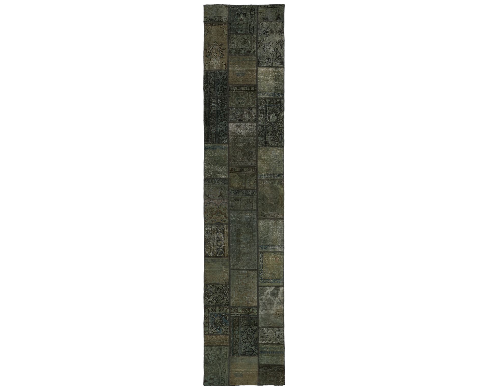 Vintage Royal Patchwork -matot valmistetaan persialaisista villamatoista, jotka on leikattu pienemmiksi paloiksi ja koottu uudelleen tilkkutäkkimäiseksi sommitelmaksi. Palat kivipestään ja värjätään uudelleen, jolloin alkuperäinen kuviointi jää hienovaraisesti näkyviin ja pinta saa pehmeän, kerroksellisen ilmeen. Vaihtelut sävyissä ja palojen kuvioissa tekevät jokaisesta Vintage Royal Patchwork -matosta ainutlaatuisen. Käyttämätön.