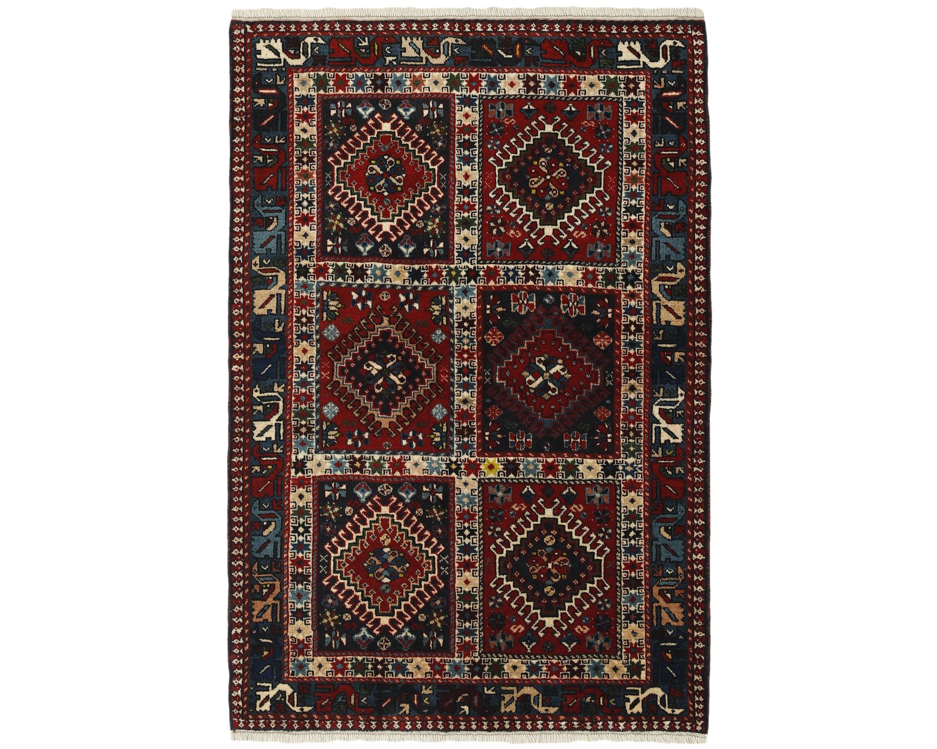 Yalameh-matot ovat käsinsolmittuja villamattoja, joille ovat ominaisia monimuotoiset tribalikuvioinnit ja rohkea värien käyttö. Vaikka Yalameh-matoissa hyödynnetään koneellisesti kehrättyä villaa, niiden pinnassa on kauniin pehmeä kiilto ja luonnollinen elo. Solmutiheys vaihtelee 250 000–350 000 solmun välillä neliömetrillä. Käyttämätön.
