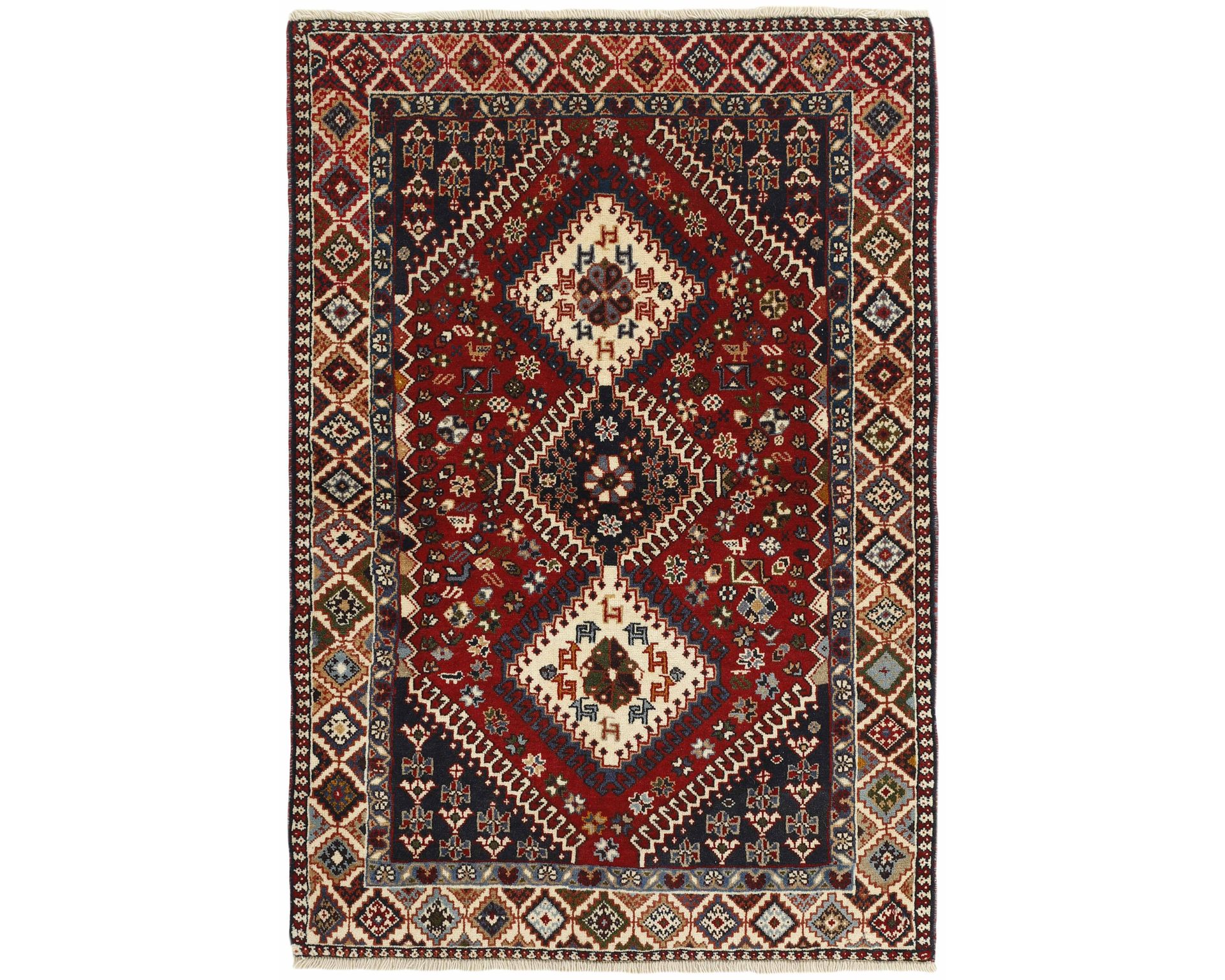 Yalameh-matot ovat käsinsolmittuja villamattoja, joille ovat ominaisia monimuotoiset tribalikuvioinnit ja rohkea värien käyttö. Vaikka Yalameh-matoissa hyödynnetään koneellisesti kehrättyä villaa, niiden pinnassa on kauniin pehmeä kiilto ja luonnollinen elo. Solmutiheys vaihtelee 250 000–350 000 solmun välillä neliömetrillä. Käyttämätön.