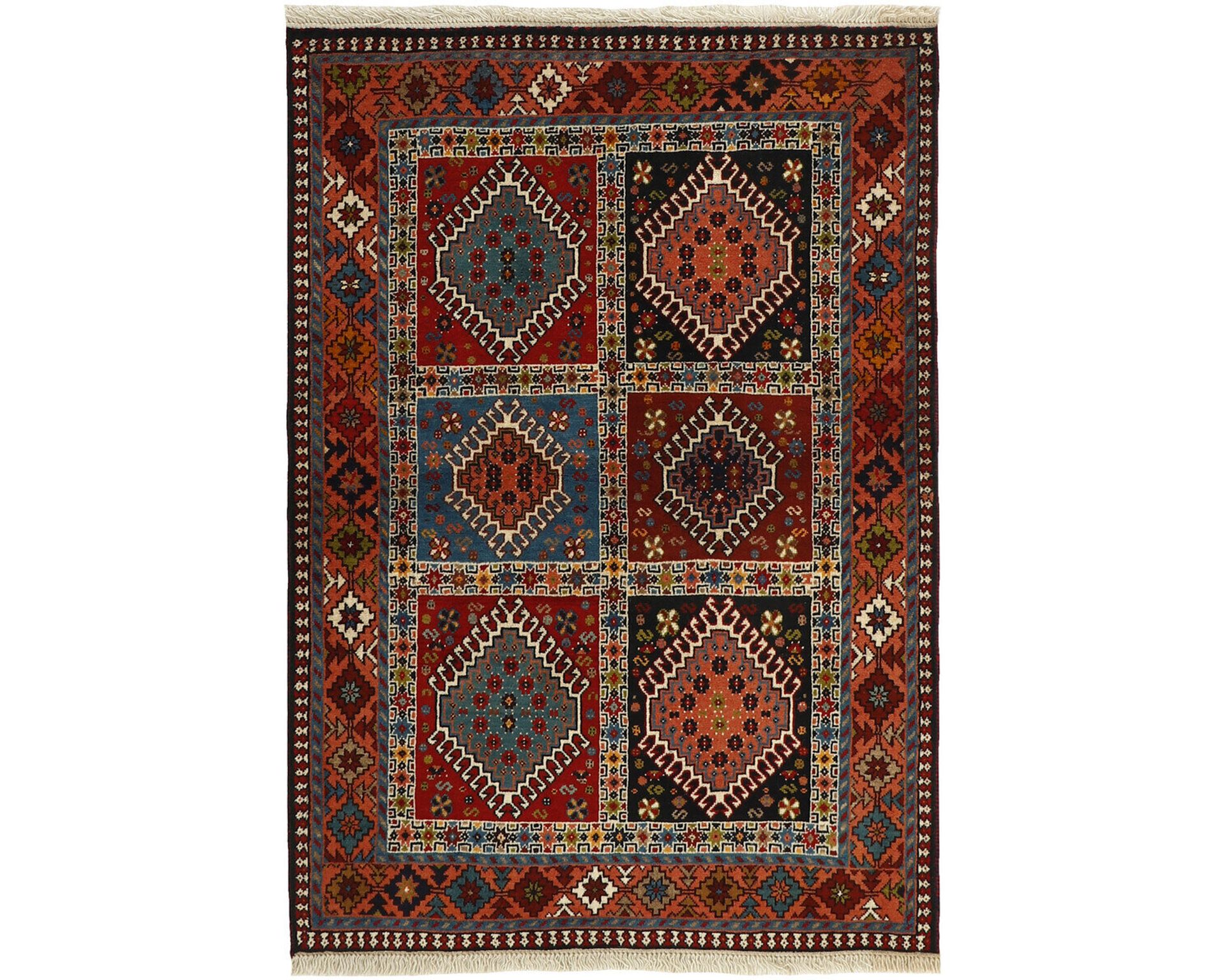 Yalameh-matot ovat käsinsolmittuja villamattoja, joille ovat ominaisia monimuotoiset tribalikuvioinnit ja rohkea värien käyttö. Vaikka Yalameh-matoissa hyödynnetään koneellisesti kehrättyä villaa, niiden pinnassa on kauniin pehmeä kiilto ja luonnollinen elo. Solmutiheys vaihtelee 250 000–350 000 solmun välillä neliömetrillä. Käyttämätön.