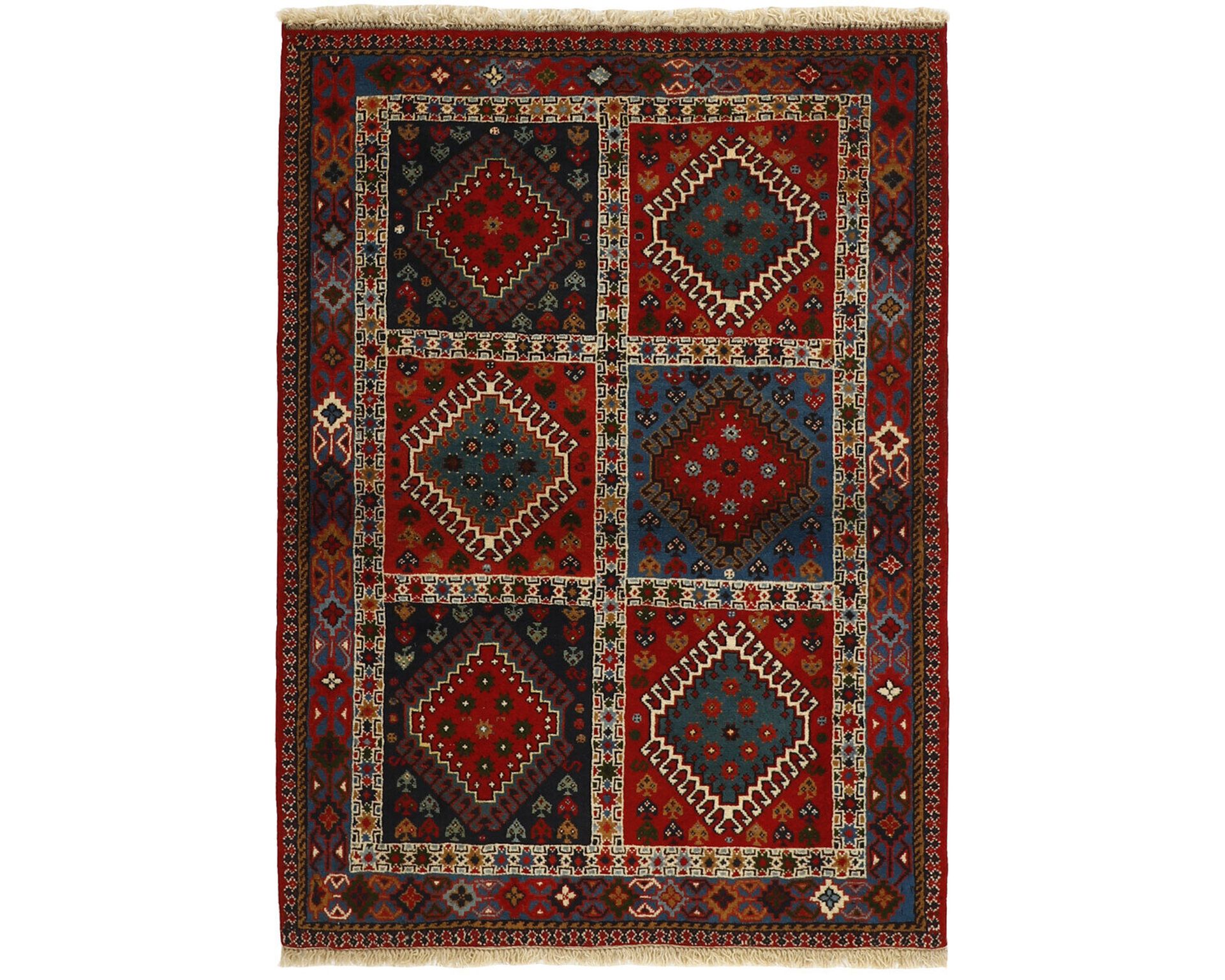 Yalameh-matot ovat käsinsolmittuja villamattoja, joille ovat ominaisia monimuotoiset tribalikuvioinnit ja rohkea värien käyttö. Vaikka Yalameh-matoissa hyödynnetään koneellisesti kehrättyä villaa, niiden pinnassa on kauniin pehmeä kiilto ja luonnollinen elo. Solmutiheys vaihtelee 250 000–350 000 solmun välillä neliömetrillä. Käyttämätön.