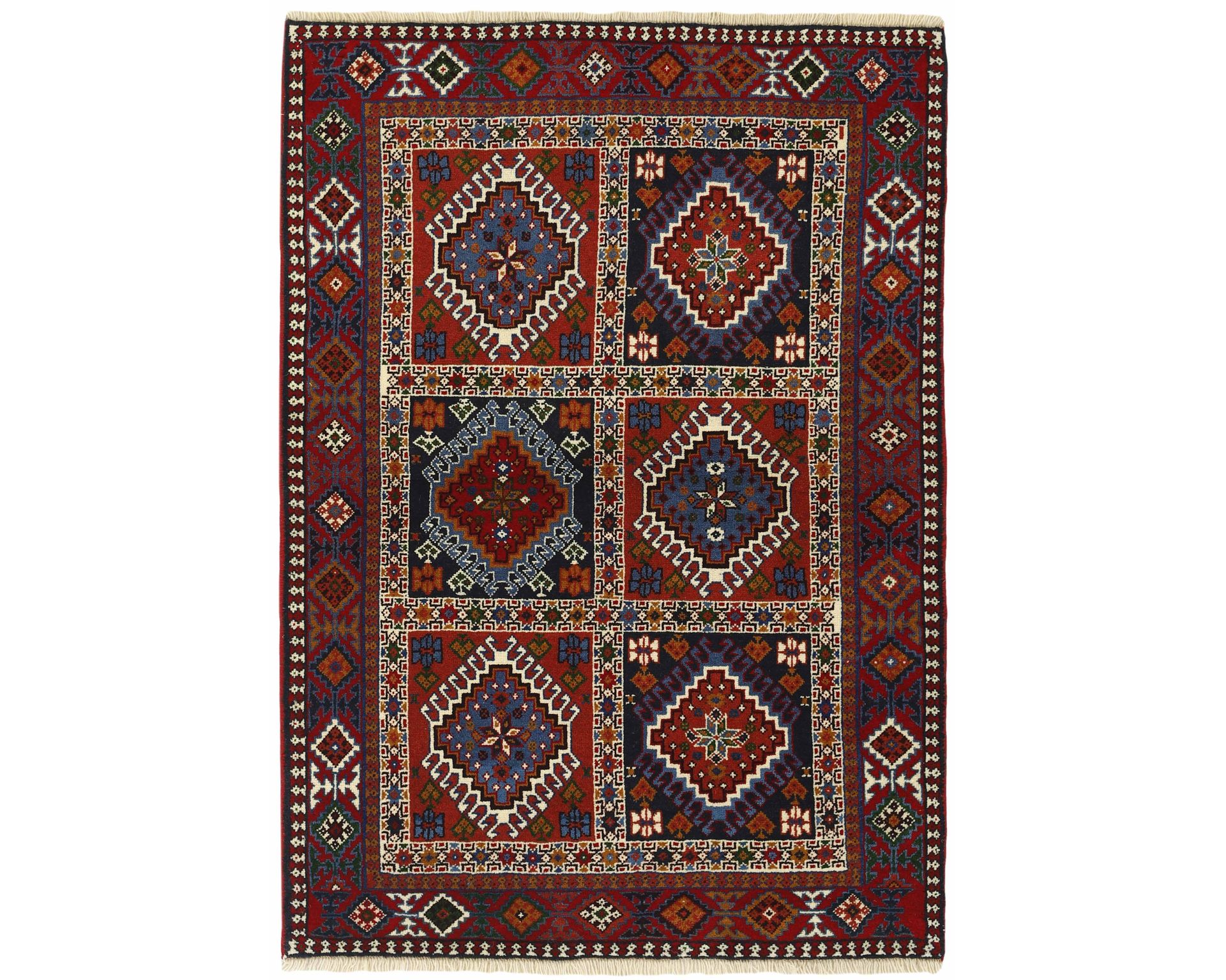 Yalameh-matot ovat käsinsolmittuja villamattoja, joille ovat ominaisia monimuotoiset tribalikuvioinnit ja rohkea värien käyttö. Vaikka Yalameh-matoissa hyödynnetään koneellisesti kehrättyä villaa, niiden pinnassa on kauniin pehmeä kiilto ja luonnollinen elo. Solmutiheys vaihtelee 250 000–350 000 solmun välillä neliömetrillä. Käyttämätön.