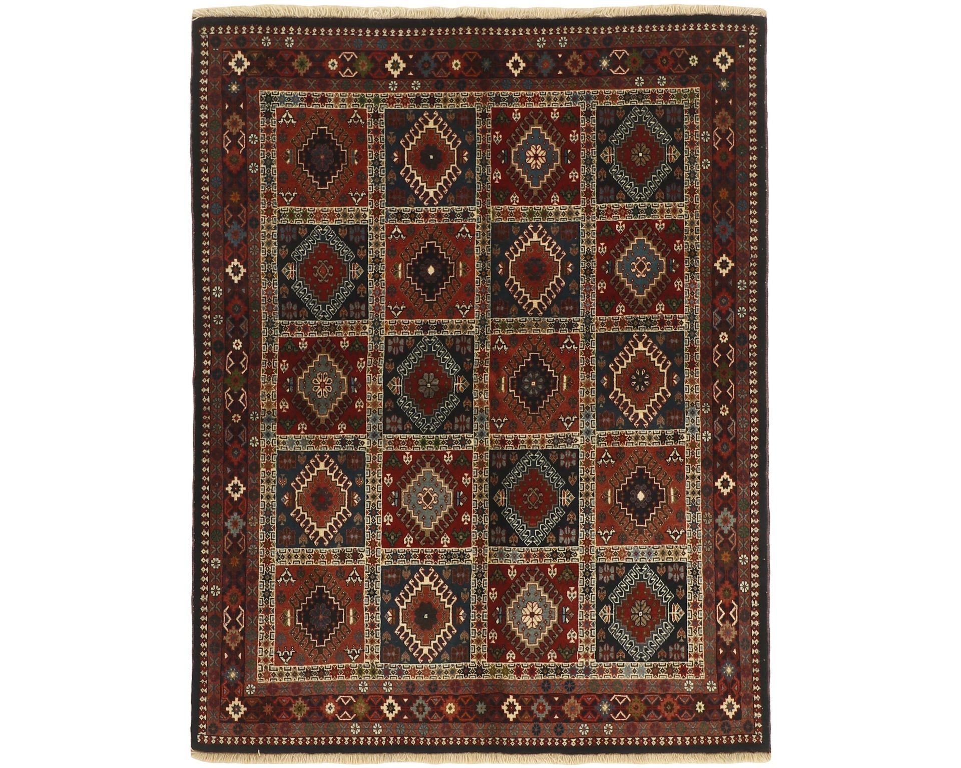 Yalameh-matot ovat käsinsolmittuja villamattoja, joille ovat ominaisia monimuotoiset tribalikuvioinnit ja rohkea värien käyttö. Vaikka Yalameh-matoissa hyödynnetään koneellisesti kehrättyä villaa, niiden pinnassa on kauniin pehmeä kiilto ja luonnollinen elo. Solmutiheys vaihtelee 250 000–350 000 solmun välillä neliömetrillä. Käyttämätön.