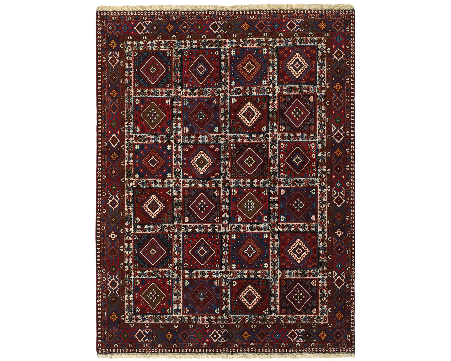 Yalameh-matot ovat käsinsolmittuja villamattoja, joille ovat ominaisia monimuotoiset tribalikuvioinnit ja rohkea värien käyttö. Vaikka Yalameh-matoissa hyödynnetään koneellisesti kehrättyä villaa, niiden pinnassa on kauniin pehmeä kiilto ja luonnollinen elo. Solmutiheys vaihtelee 250 000–350 000 solmun välillä neliömetrillä. Käyttämätön.