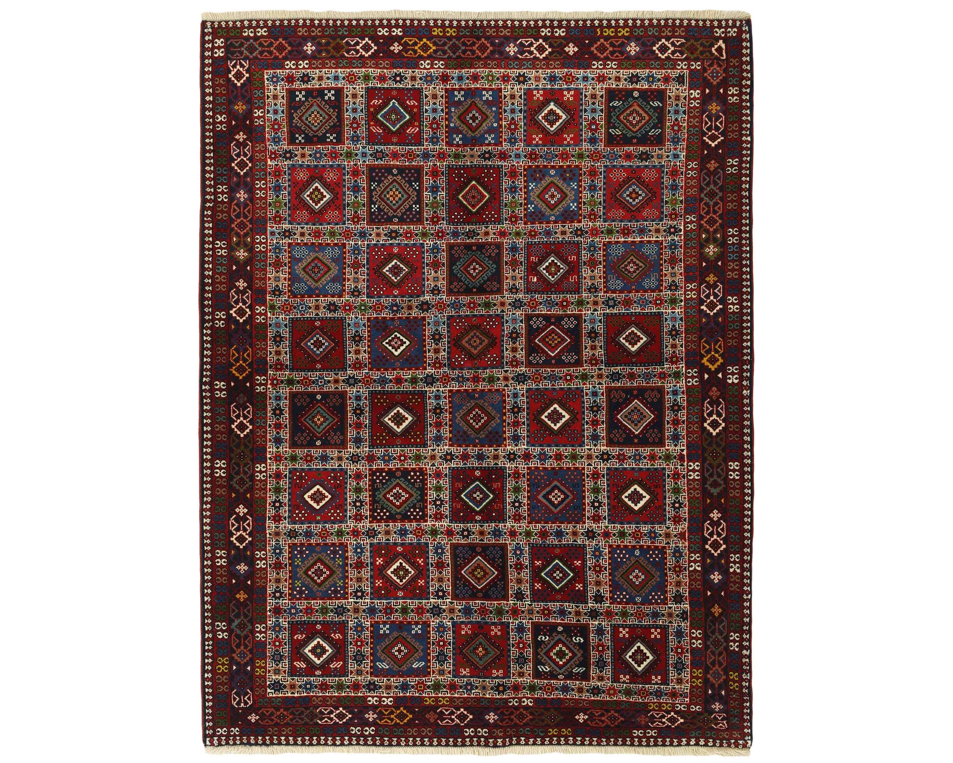 Yalameh-matot ovat käsinsolmittuja villamattoja, joille ovat ominaisia monimuotoiset tribalikuvioinnit ja rohkea värien käyttö. Vaikka Yalameh-matoissa hyödynnetään koneellisesti kehrättyä villaa, niiden pinnassa on kauniin pehmeä kiilto ja luonnollinen elo. Solmutiheys vaihtelee 250 000–350 000 solmun välillä neliömetrillä. Käyttämätön.