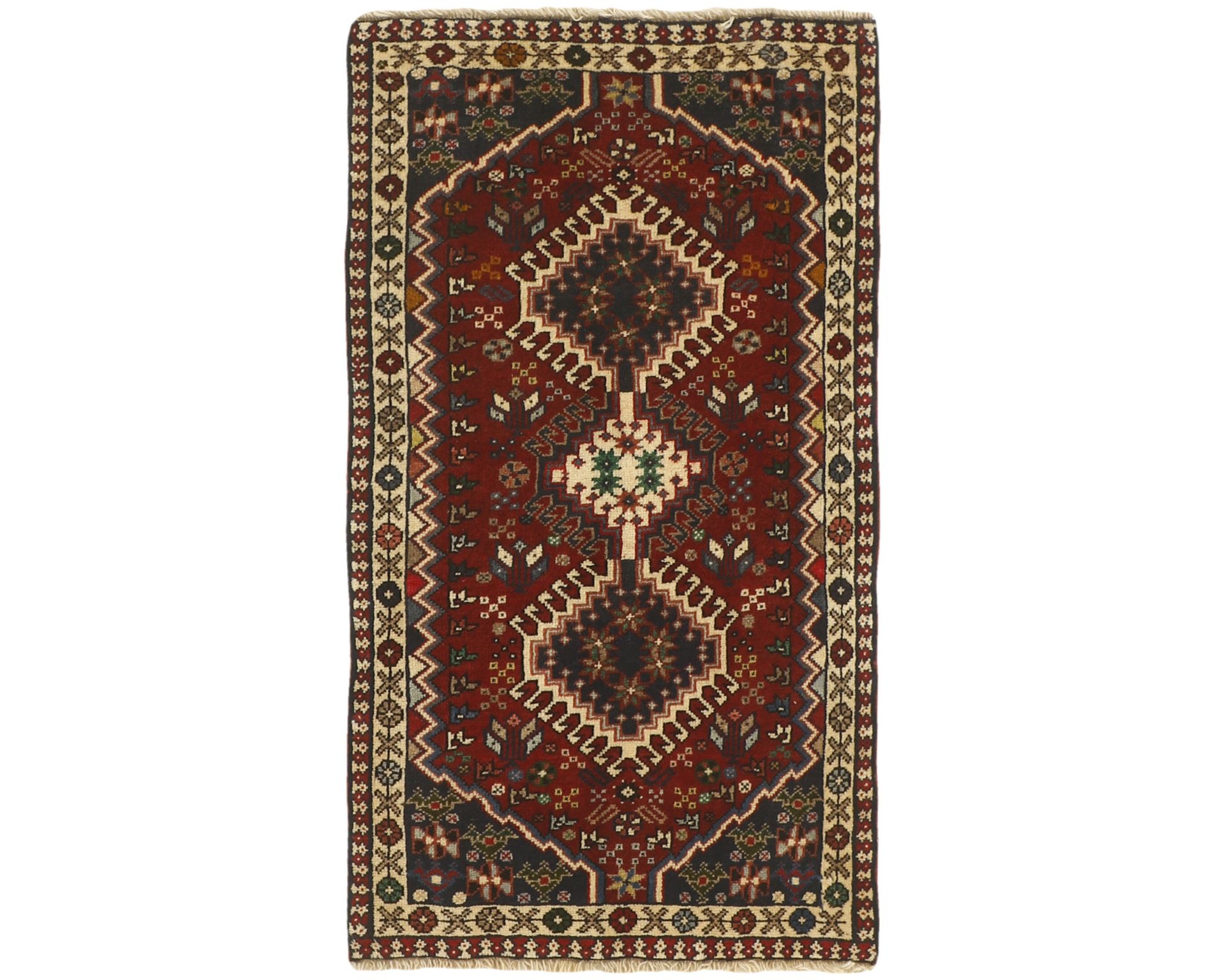 Yalameh-matot ovat käsinsolmittuja villamattoja, joille ovat ominaisia monimuotoiset tribalikuvioinnit ja rohkea värien käyttö. Vaikka Yalameh-matoissa hyödynnetään koneellisesti kehrättyä villaa, niiden pinnassa on kauniin pehmeä kiilto ja luonnollinen elo. Solmutiheys vaihtelee 250 000–350 000 solmun välillä neliömetrillä. Käyttämätön.