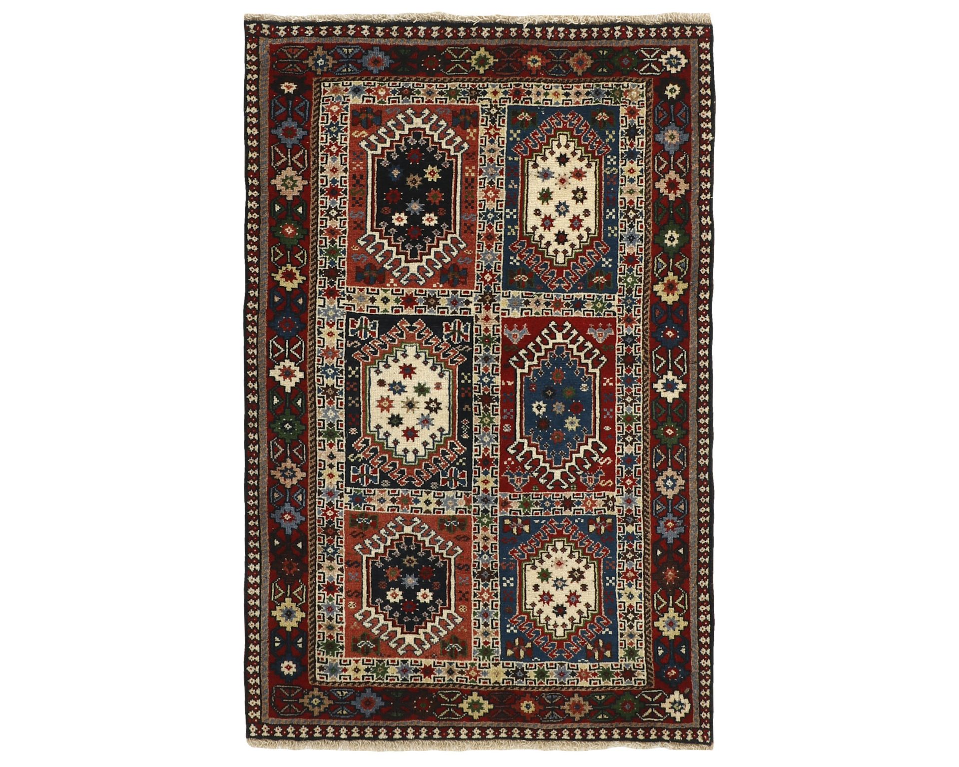 Yalameh-matot ovat käsinsolmittuja villamattoja, joille ovat ominaisia monimuotoiset tribalikuvioinnit ja rohkea värien käyttö. Vaikka Yalameh-matoissa hyödynnetään koneellisesti kehrättyä villaa, niiden pinnassa on kauniin pehmeä kiilto ja luonnollinen elo. Solmutiheys vaihtelee 250 000–350 000 solmun välillä neliömetrillä. Käyttämätön.