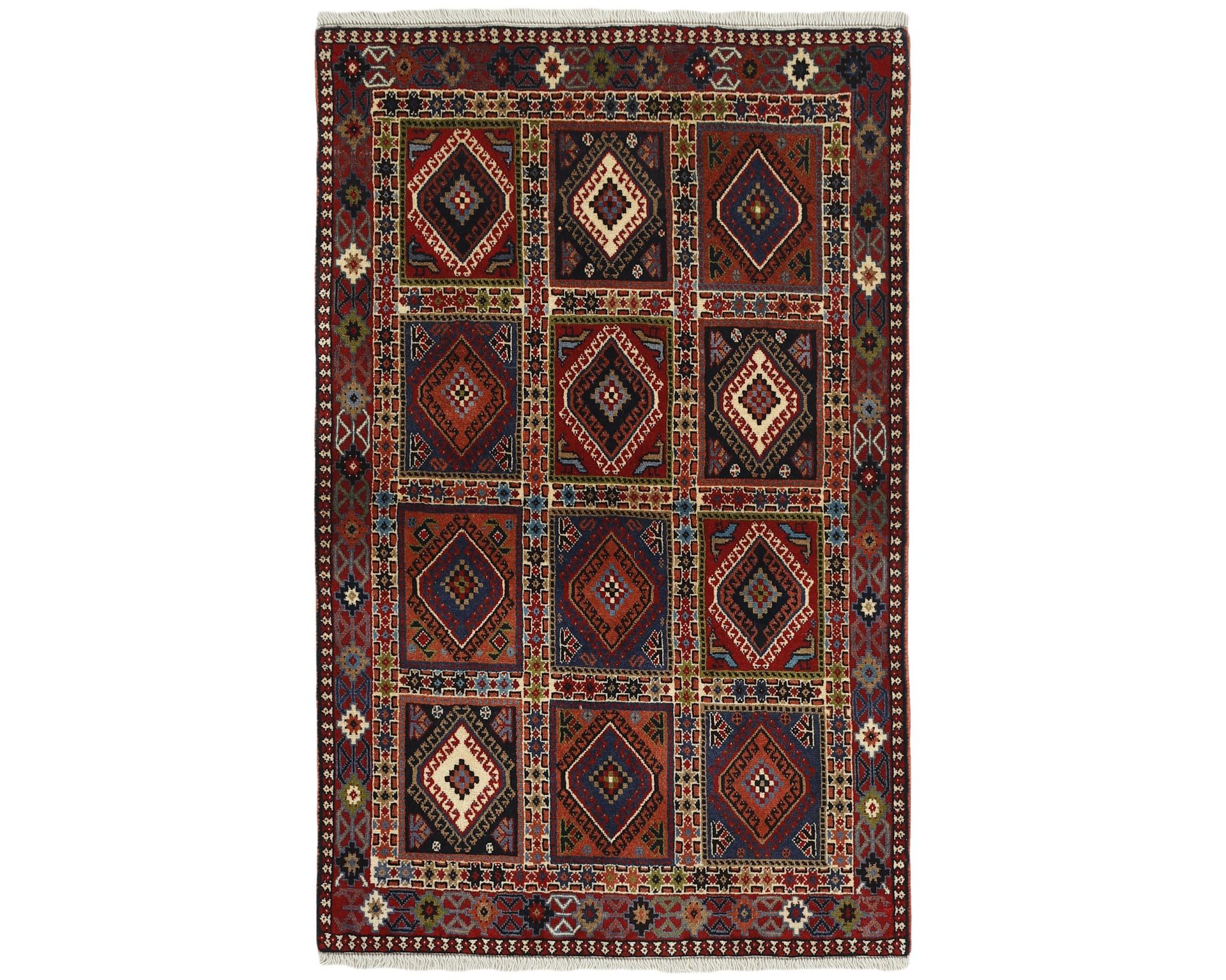 Yalameh-matot ovat käsinsolmittuja villamattoja, joille ovat ominaisia monimuotoiset tribalikuvioinnit ja rohkea värien käyttö. Vaikka Yalameh-matoissa hyödynnetään koneellisesti kehrättyä villaa, niiden pinnassa on kauniin pehmeä kiilto ja luonnollinen elo. Solmutiheys vaihtelee 250 000–350 000 solmun välillä neliömetrillä. Käyttämätön.