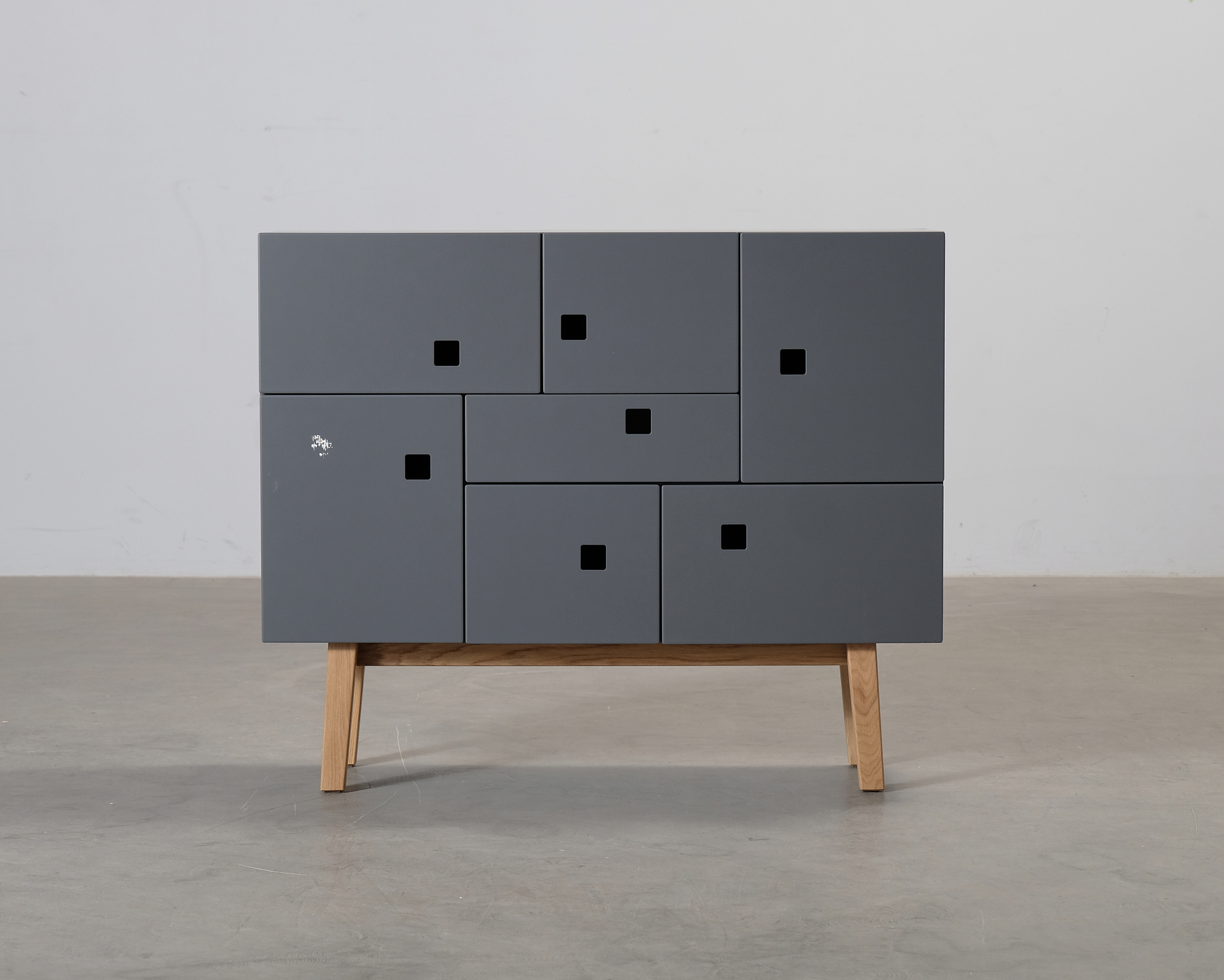 Zweed Peep C1 on tyylikäs ja moderni senkki, joka yhdistää hillityn harmaan rungon ja tammijalan luonnollisen kauniiksi kokonaisuudeksi. Senkki tarjoaa reilusti säilytystilaa, joka auttavat pitämään kodin järjestyksessä, olipa kyse kirjoista, astioista tai muista arjen tarvikkeista. Peep C1 sopii erinomaisesti niin olohuoneeseen, ruokailutilaan kuin eteiseenkin, ja sen selkeälinjainen design tuo tilaan harmonisen ja ajattoman ilmeen. Etuosassa iso naarmu.